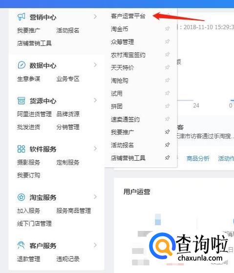 在卖家中心左边的菜单栏里找到“营销中心”--“客户运营平台”。