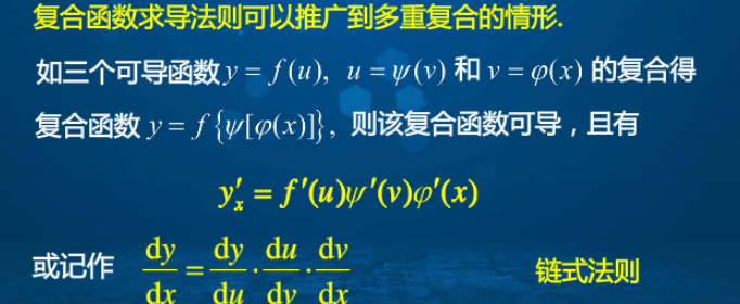 总的公式f'[g(x)]=f'(g)×g'(x)。主要方法:先对该函数进行分解,分解成简单函数,然后对各个简单函数求导,最后将求导后的结果相乘,并将中间变量还原为对应的自变量。