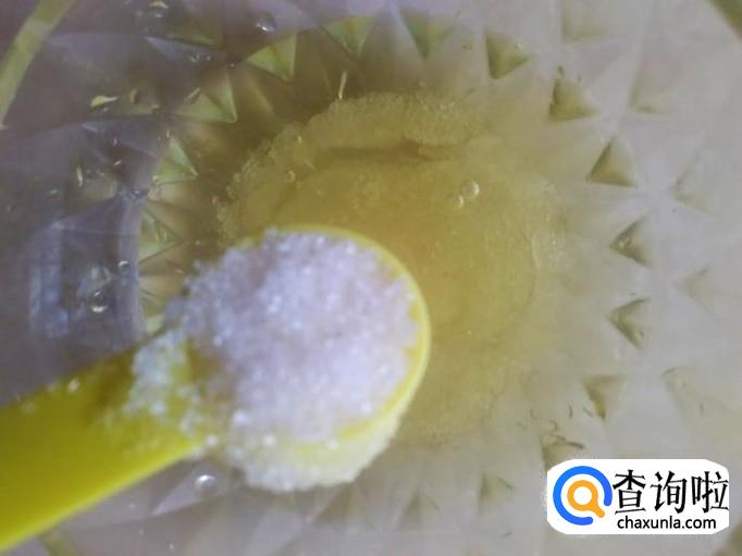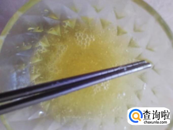 然后加适量的白糖到鸡蛋清里用筷子打搅均匀。