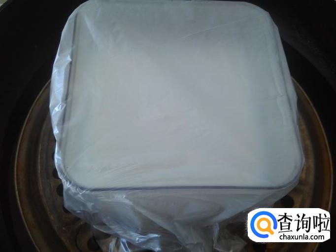 再用薄膜盖住,放到锅里用大火蒸10分钟左右。