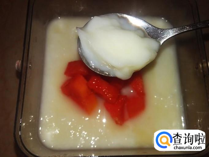 打开锅盖,双皮奶已经做成了,拿出来加自己喜欢的果粒或其它零食搭配吃,放冰箱冷冻过更好吃。