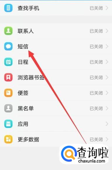 进入之后,选择“短信”,进入下一页面,如图所示。