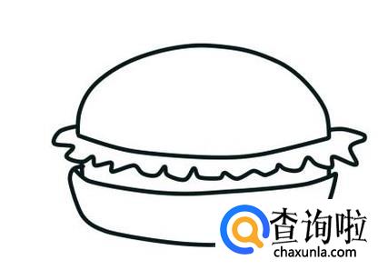从肉饼层往下,画一个小船的形状,表示最下层的面包。到这里,线条就画完了。