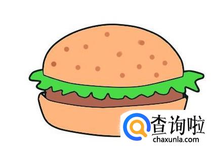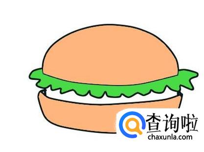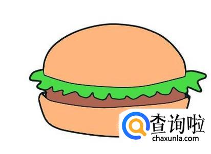 画简易汉堡,也要画出上下两层面包、生菜和肉饼,下面就开始画汉堡。