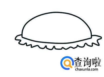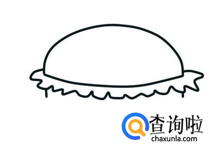 先画一个扁扁的半圆,圆的底边稍微画出弧度,表示最上层的面包。
