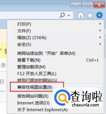 点击右上角圈出来的位置,菜单里会出现一个“兼容性视图设置“,单击打开它。