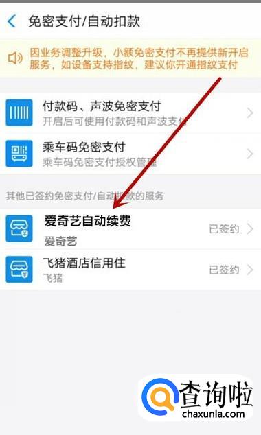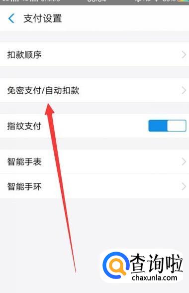进入之后,选择“免密支付/自动扣款”,如图所示。