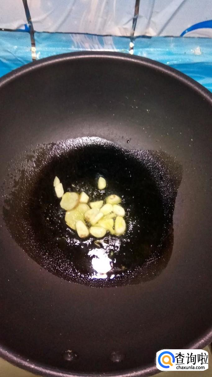 准备适量姜和蒜,洗净后,将姜和蒜切成片。炒锅中放入适量油,油热后,放入蒜片,姜片爆香。