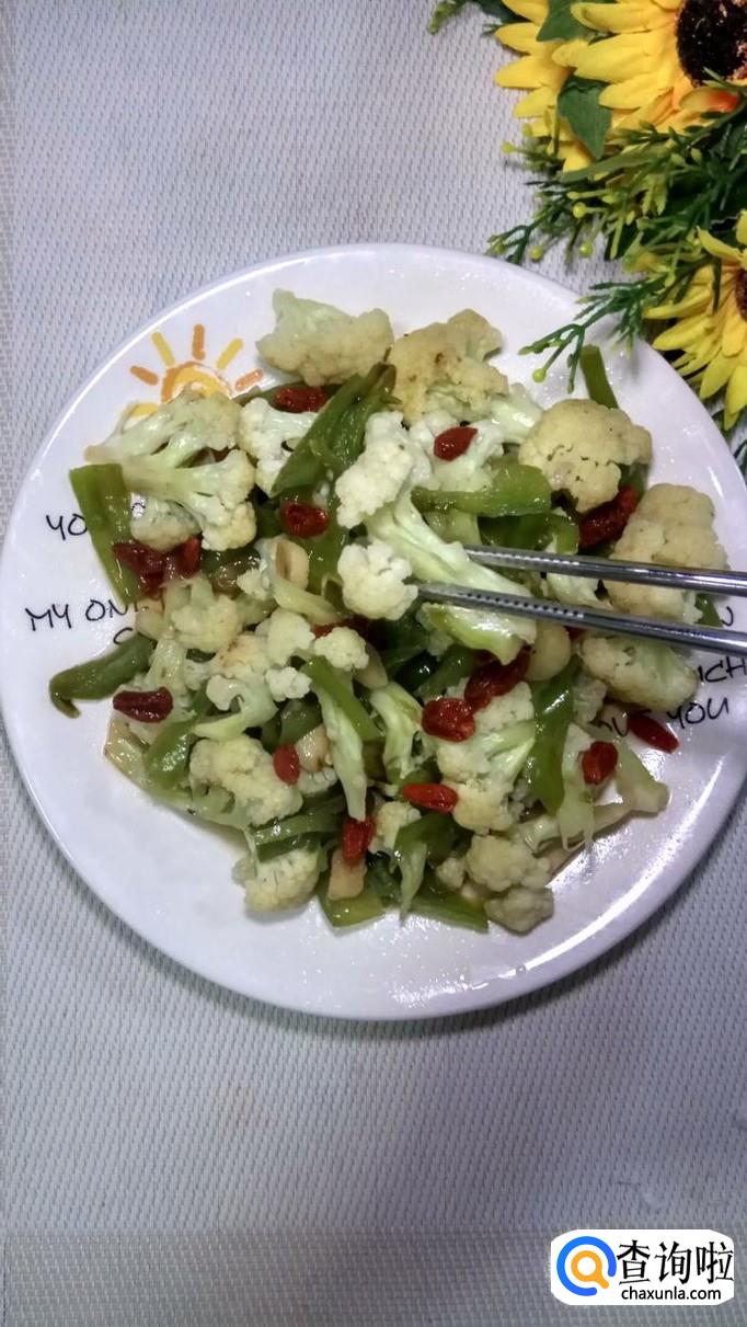 准备适量枸杞子,将枸杞子提前用清水泡开,枸杞子不仅可以增加菜肴的营养,而且让菜肴的色泽更加好看。将枸杞子放在菜肴上面,就可以吃了,真的非常美味。