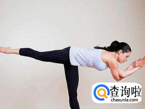 半月式 先直立身体,然后慢慢地抬起一条腿,使双腿呈90°后用一只手撑在地面上,另一只手竖直向上,身体的重力主要由解除地面的那条腿来承受。维持该姿势一分钟左右,然后换腿。
