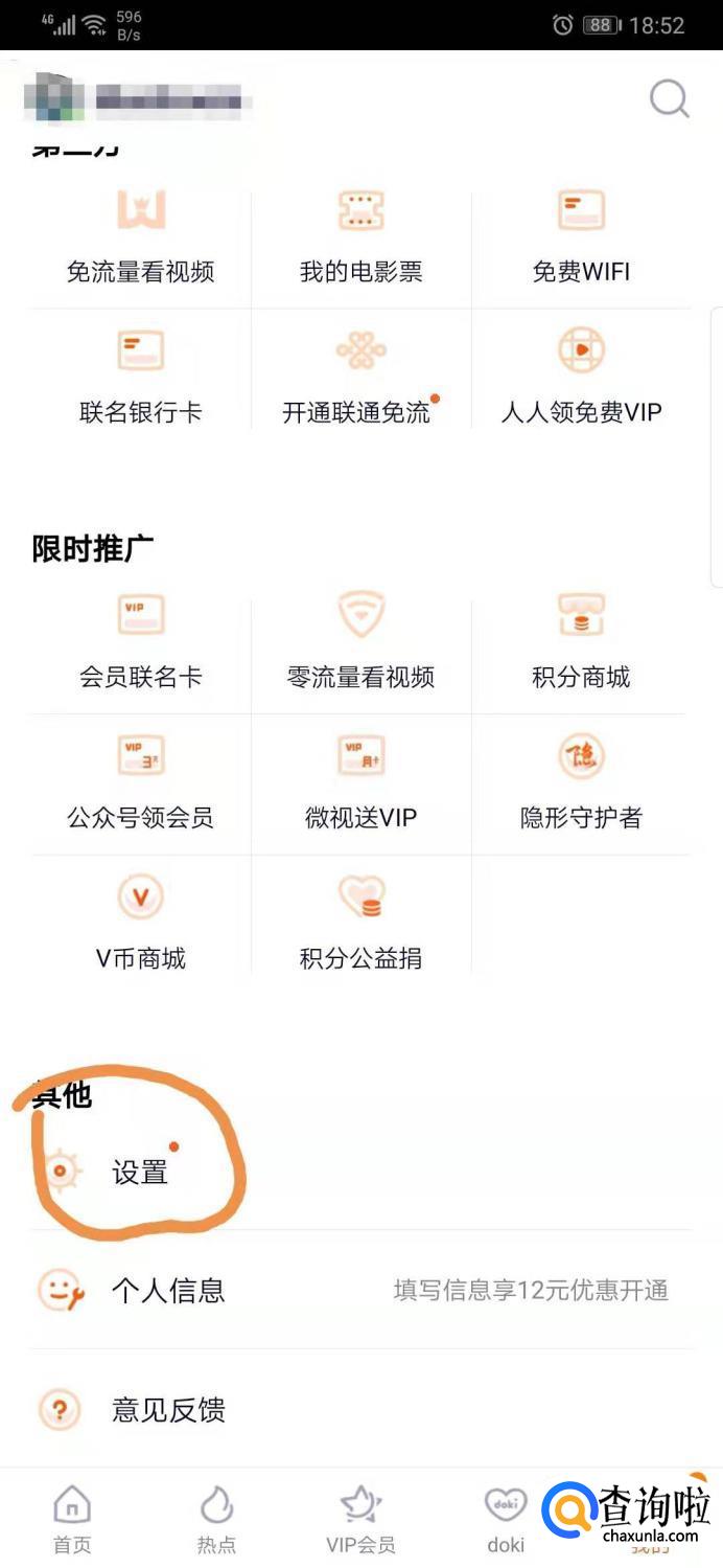 进入个人中心页面后,可以看到当前登录账号的信息,然后下滑屏幕到最底部,点击“设置”按钮。