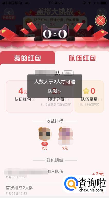 进入活动界面后,点击左下角【领组队红包】进入自己的队伍。