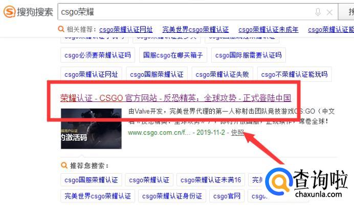 在搜索输入【csgo荣耀】,点击【搜索】,然后点击【荣耀认证】,并进入。然后点击【立即开始荣耀认证】,输入信息后,提示身份证号已被注册,这是点击下方的【取消荣耀实名认证】。