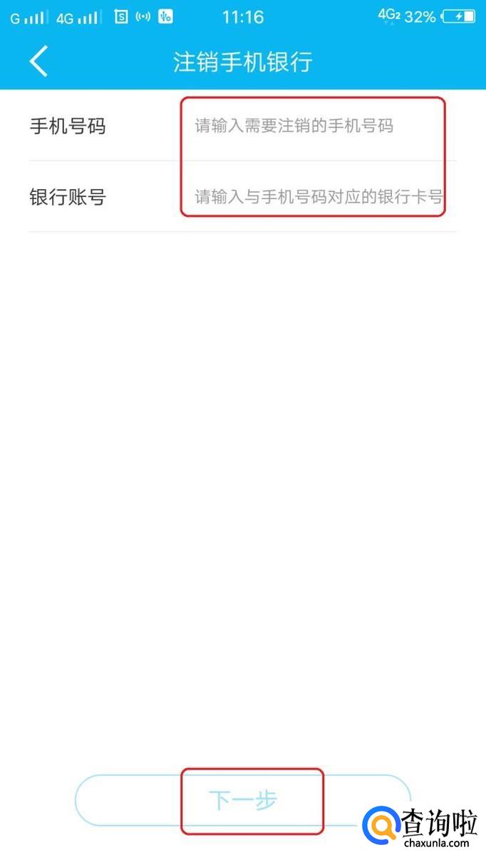 在其中就可以看到“注销手机银行”选项了,如图所示,点击之后,正确填写相关信息,按提示操作,就可以成功注销手机银行了。