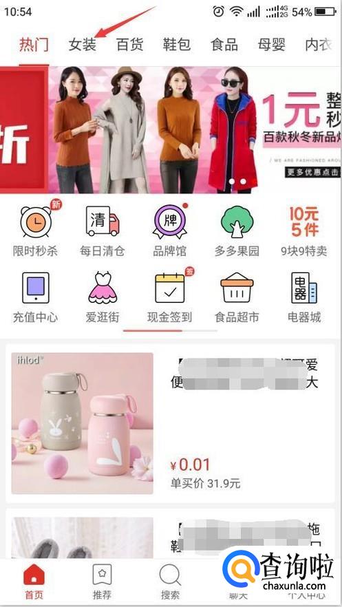 首先,在手机上打开拼多多登录,点击要购买的物品类目。