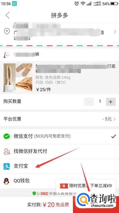 底部弹出支付宝供选择,点击支付宝,再点击立即支付。