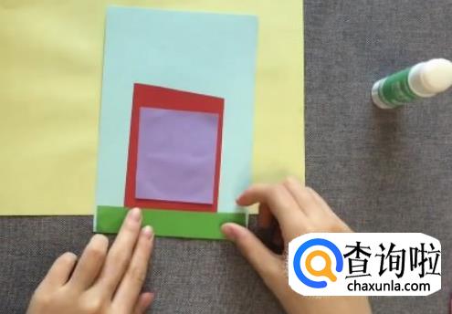 再取不同颜色的卡纸剪出一个长方形,粘在花盆造型上。再取另一张其他颜色的卡纸剪出一个长方条粘在花盆的底部,备用。