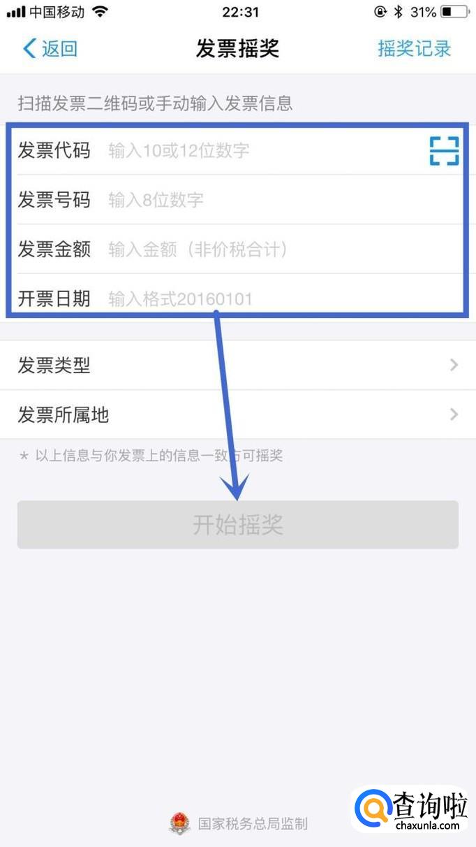 最后输入发票所对应的信息,并点击开始摇奖就可以了。你学会了吗?赶快动手试一试吧!