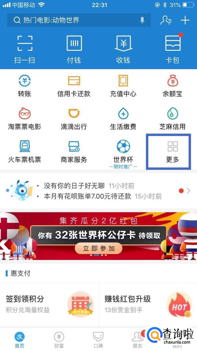 首先在我们的手机桌面上找到支付宝并点击它,如下图所示。
