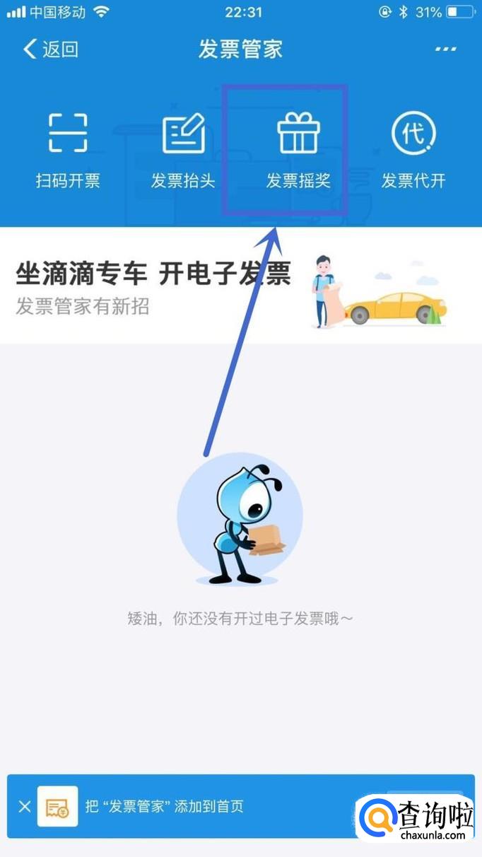 然后点击发票摇奖,如下图所示。