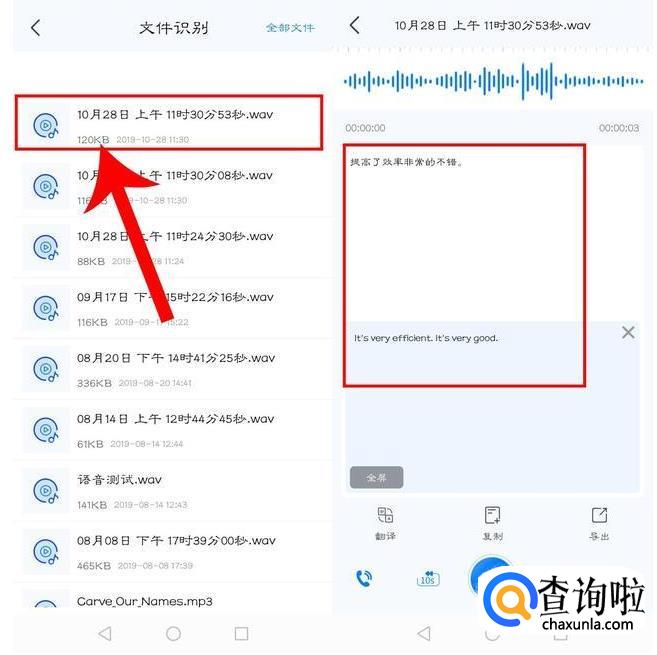 点击后就会进入文件库中,在其中我们找到需要识别的录音文件,点击文件就能将其转为文字。