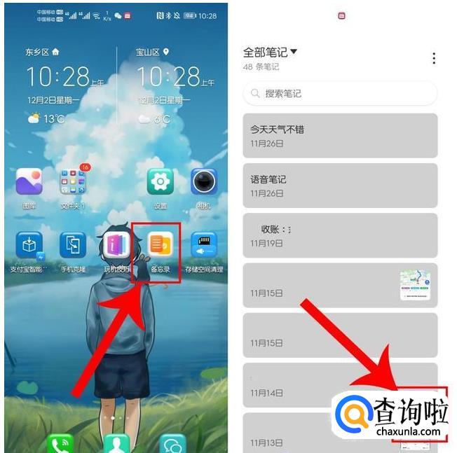 首先打开桌面上的备忘录,进入后点击右下角"+"号新建一页记事本。