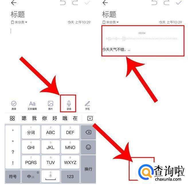 在记事本中有一个麦克风形状的语音按钮,点击它备忘录就会将听到的语音全部转为文字记录下来啦。