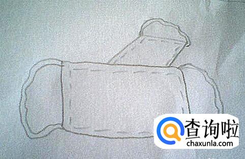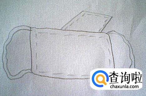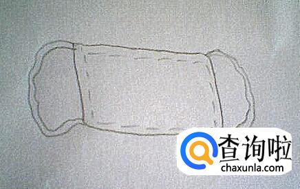 首先,画出一个不太规则的长方形,作为口罩的大致外形。