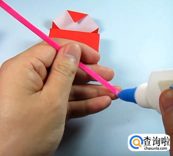 将纸条两端,分别向中间折一小部分,将中间弯曲成弧形,在将两头涂上胶水。