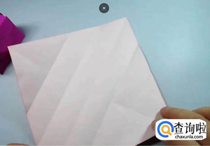 先准备一张正方形的纸,将纸张的四个角沿着对角线对折,然后在展开。