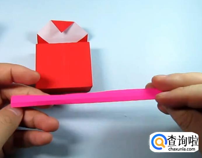 再取一张长条形的纸,用来作手提带。