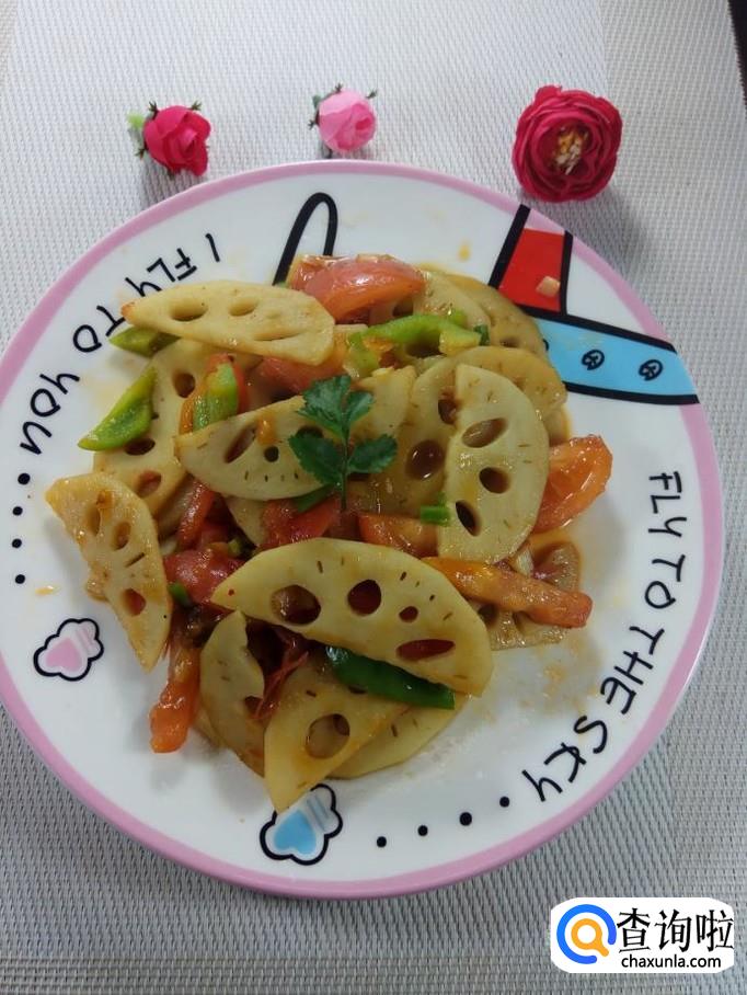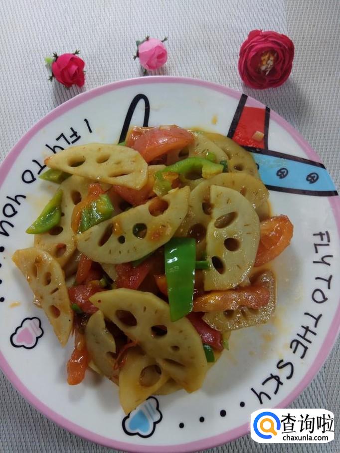 莲藕适量,西红柿适量,青椒适量,蒜苗适量,盐适量,鸡精适量,五香粉适量,生抽适量,陈醋适量。