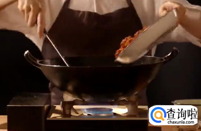 翻炒到均匀裹上酱汁,淋上芝麻油和融化的猪油提亮增香。之后就可以出锅装盘了。
