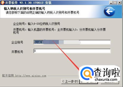 之后,会弹出企业的税号,核对税号无误后点击“下一步”。