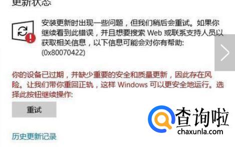 Win10更新,你的设备中缺少重要的安全和质量修复