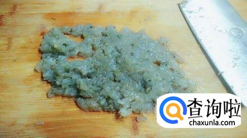 首先我们将大虾清洗干净去皮,把大虾剁成肉泥备用