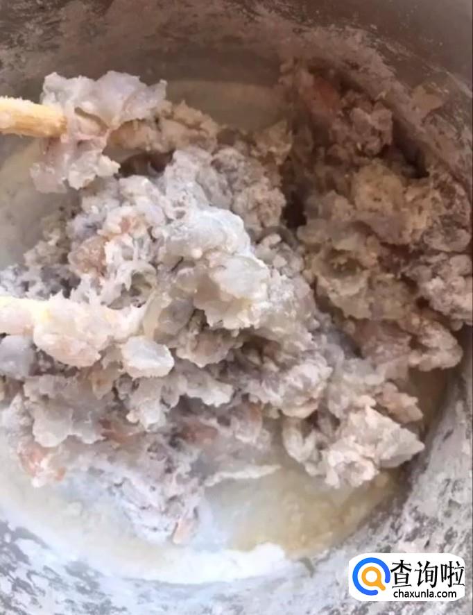 然后我们将肉泥放入一个碗中加入适量的鸡蛋,面粉,盐,生抽,料酒搅拌均匀