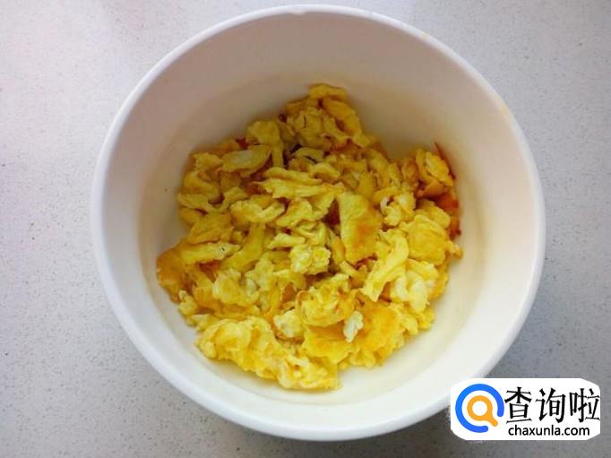 先用锅把鸡蛋炒出来,炒至七分熟即可,盛出备用。