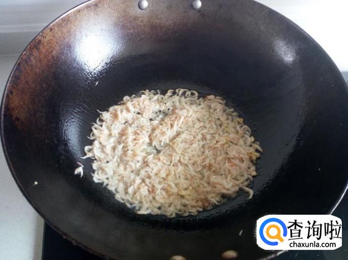 锅内放入油加热,油热后放入葱,姜,爆锅,然后放入虾皮,小火翻炒至虾皮出香味。