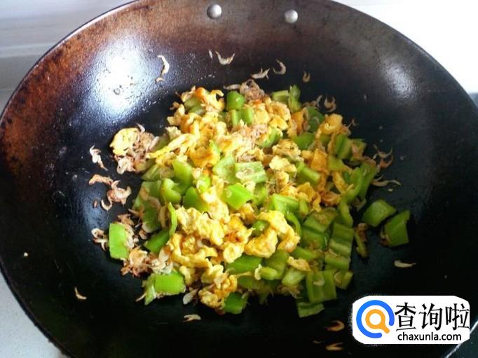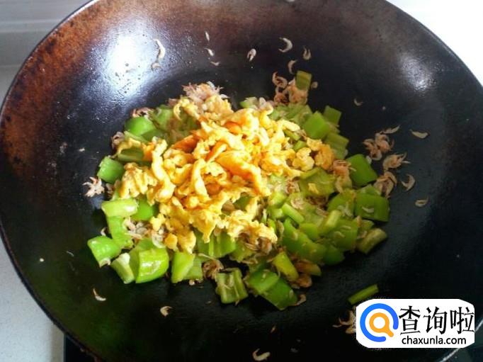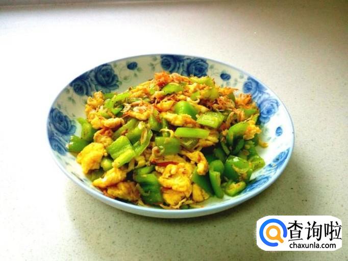 青尖椒 3个 ,虾皮 50克 ,鸡蛋 2个 。