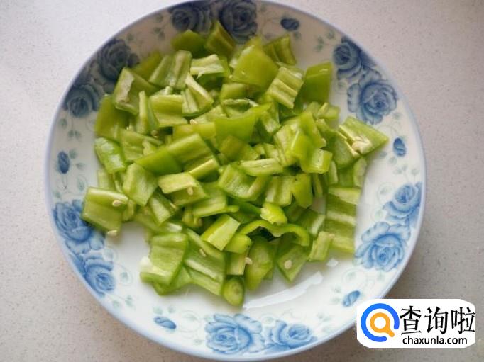 青尖椒用水清洗干净,控干水分,切成小块,备用。
