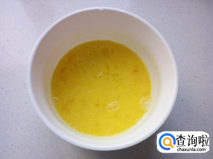 鸡蛋打入碗中,搅拌成鸡蛋液,备用。