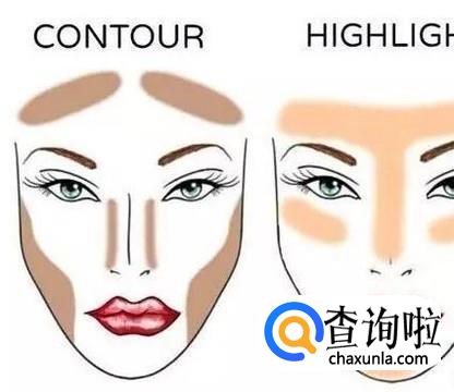 而我们的高光就适合打在鼻梁,额头,下巴,以及我们的苹果肌之类的,可以打造很好的高鼻梁,尖下巴。