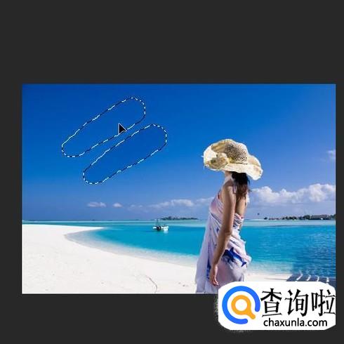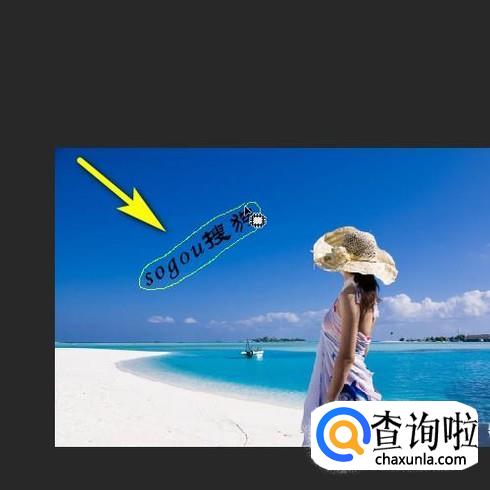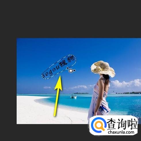 鼠标点住选区,向文字侧边挪动,当看到选区内的文字不见了。这时就可以松开鼠标了;按下CTRL+D取消选择,那么,水印即去除。