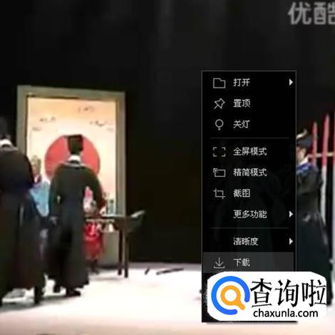 然后再播放的视频画面上右键单击,在弹出的菜单上点选“下载”。