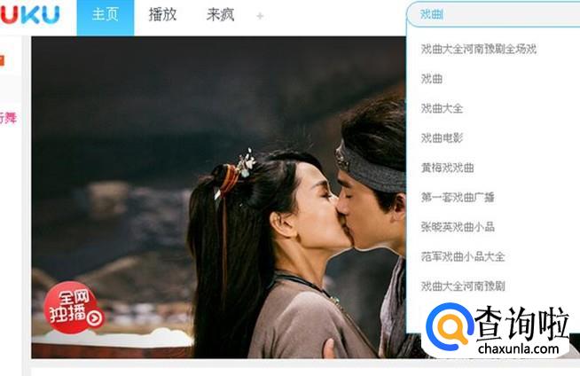打开优酷客户端,在上面的搜索框里输入你要找的戏曲名,或者直接输入“戏曲”两个字,回车。