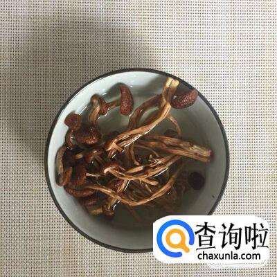 然后取适量的茶树菇剪去根部,碗中加入适量的水泡半个小时。