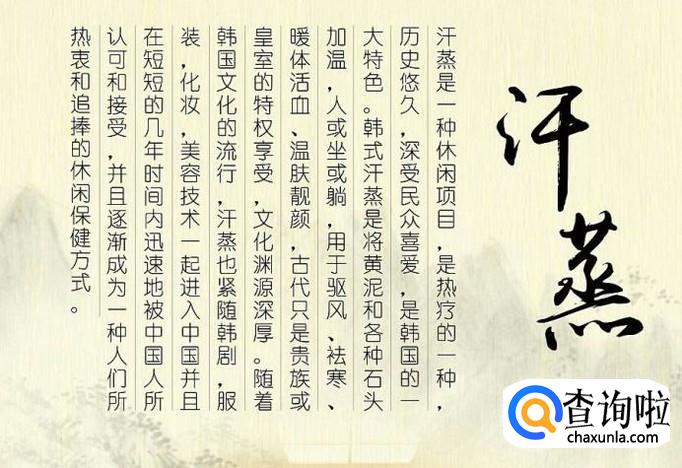 汗蒸还有一个好处就是可以减肥。当然前提是你每天吃的东西并没有超过人体每天最多能摄入的能量。汗蒸可以提高人体出汗率有利于减肥。