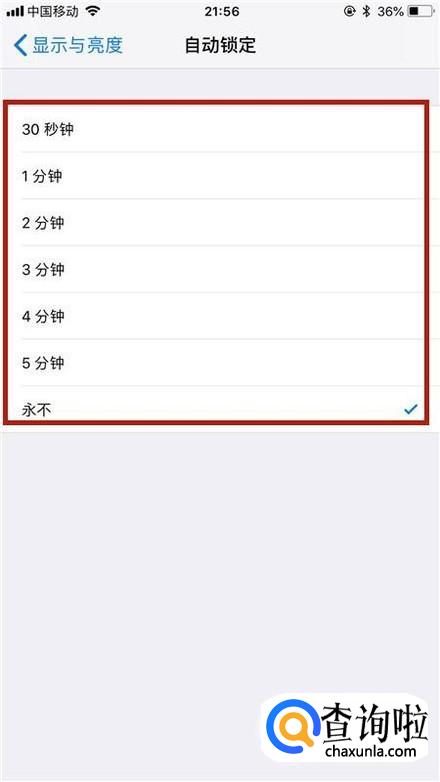 最后选择你要的锁屏时间就可以了。你学会了吗?赶快动手试一试吧!