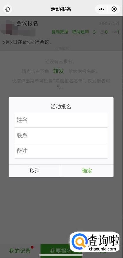好友收到活动报名的链接之后,点击打开,然后点击“我要报名”,填写自己的姓名、联系方式和备注即可。